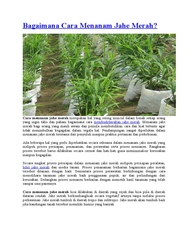 Jahe merah dapat diambil dan kemudian dibilas dengan air bersih. Meski begitu, saat menanamnya diperlukan cara menanam jahe yang benar agar cepat tumbuh, cepat panen dan hasil melimpah. Halo sobat semua terimakasih sobat sudah mampir di channel inipada kesempatan kali ini saya akan membagikan tips/cara menanam jahe yang benar agar hasilnya. Oleh bertani diposting pada 26/05/2021. Sebagaimana penanaman pada lahan terbuka, proses penanaman juga bisa menjadi bagian penting dalam cara menanam jahe di polybag.